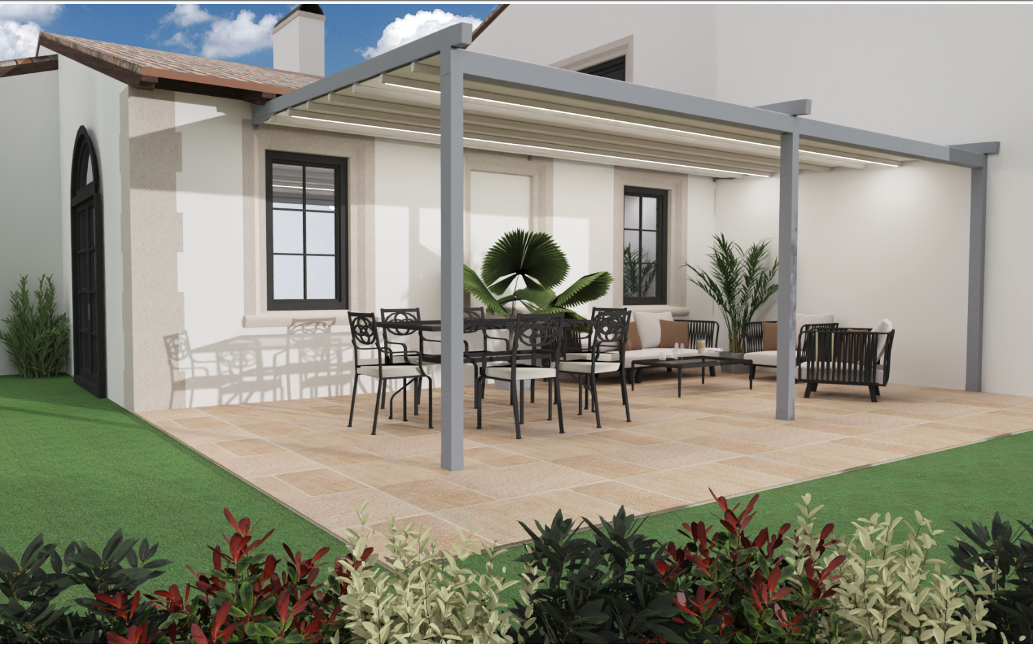 Grazie al loro design innovativo è possibile integrare la struttura con vetrate scorrevoli, tende zip doppie, singole, o semplicemente con zanzariere. Le pergole bioclimatiche offrono protezione solare, ventilazione naturale e riparo dalla pioggia. Ideali per giardini, terrazze e aree relax, queste strutture si integrano perfettamente con l’architettura della tua casa, trasformando lo spazio esterno in una vera estensione del tuo living.