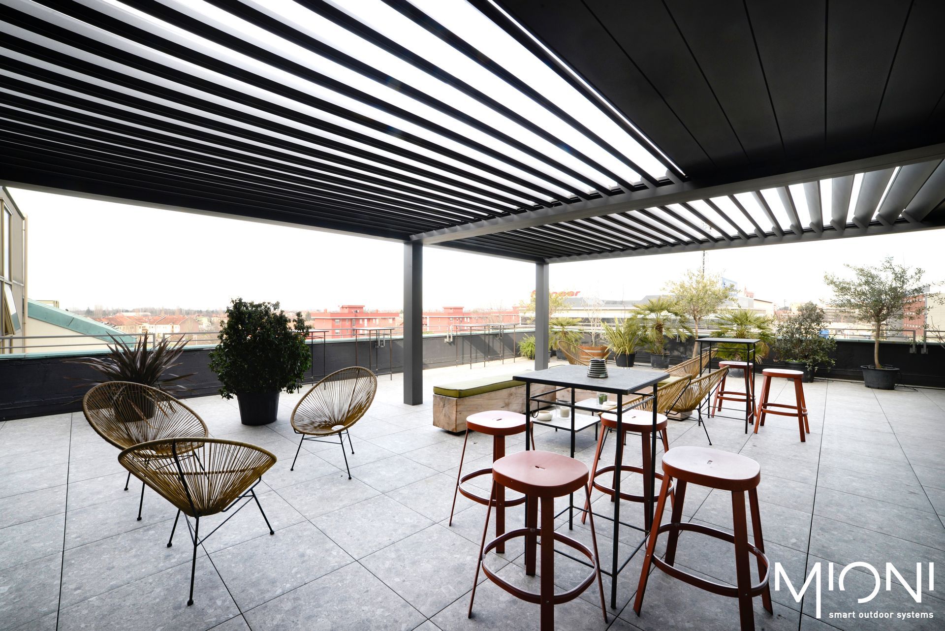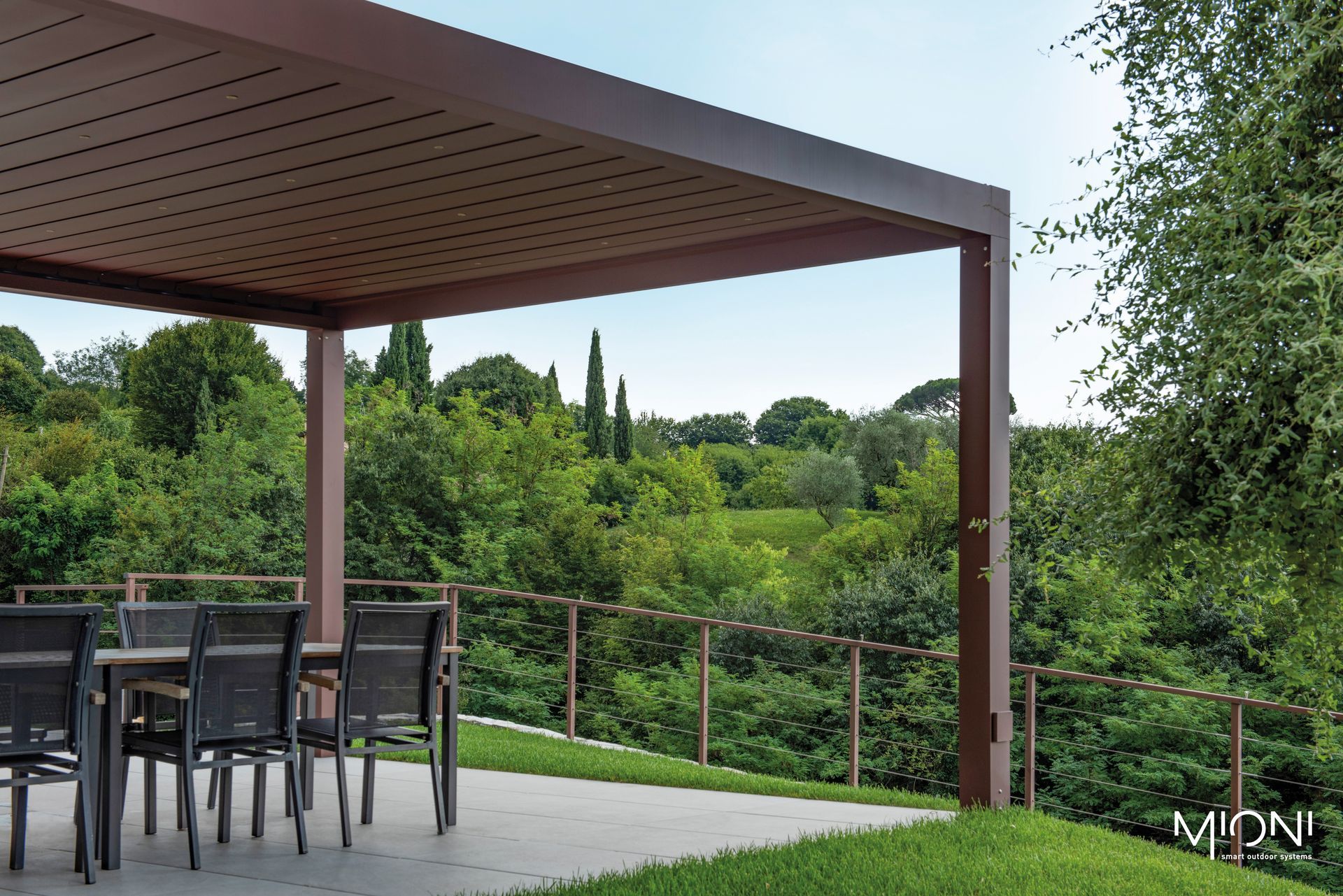 Queste strutture sono dotate di lamelle orientabili che permettono di regolare la luce, la ventilazione e la protezione dalle intemperie, garantendo un comfort ottimale in qualsiasi condizione climatica.