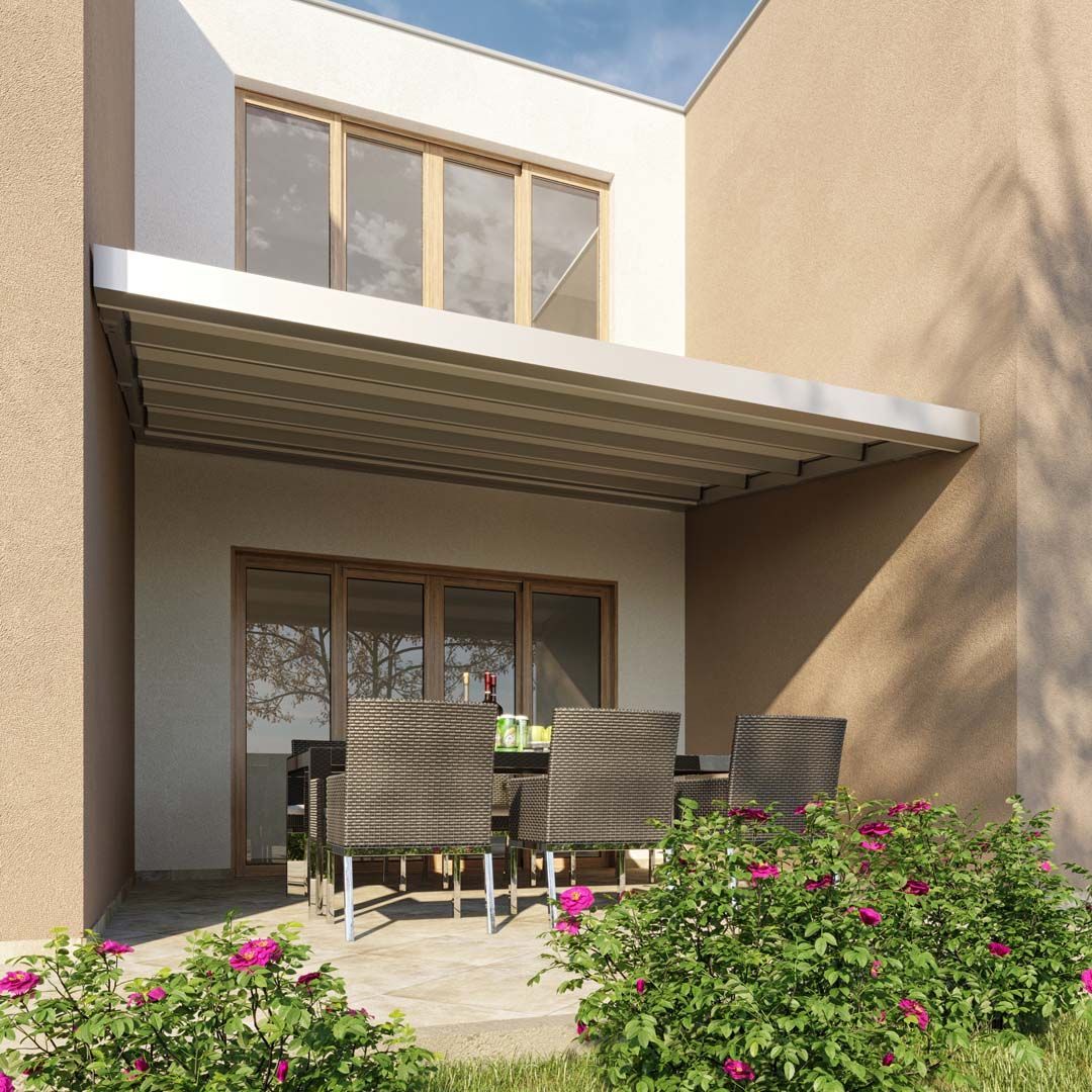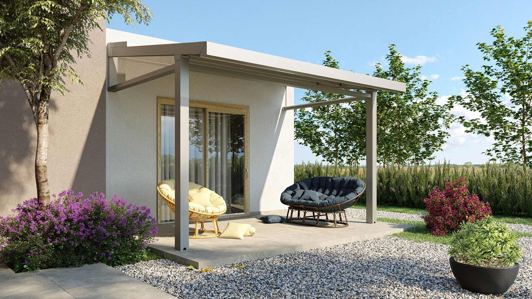 Se piove il problema non sussiste. Grazie allo scarico dell’acqua piovana, che può essere posizionato lungo la parete come un normale scarico da tetto, il tuo portico rimarrà sempre asciutto